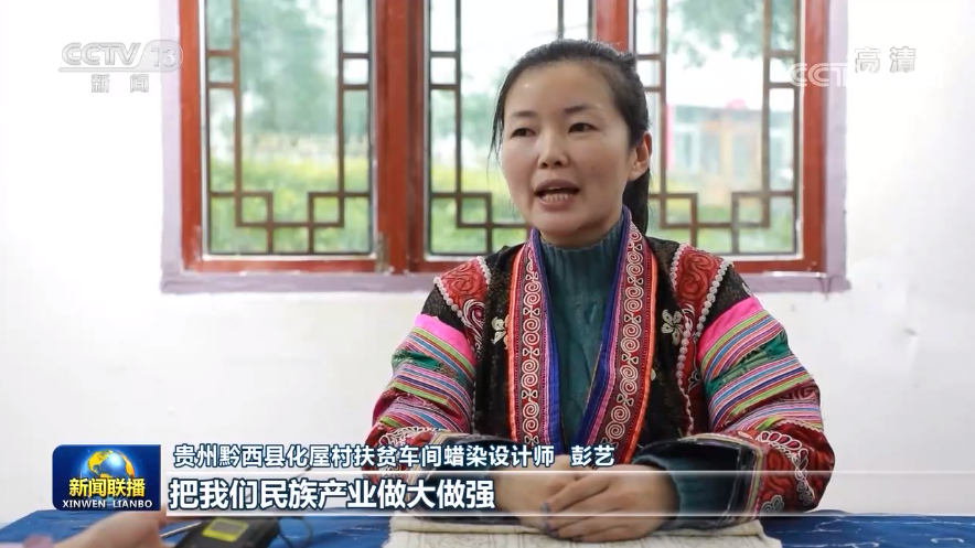 貴州黔西縣化屋村扶貧車間蠟染設計師 彭藝:把我們民族產業做大做強,讓我們苗族同胞的生活,過得像我們蠟染刺繡一樣精彩。