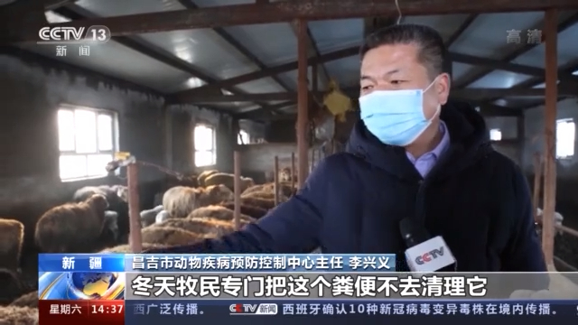 昌吉市動物疾病預防控制中心主任 李興義:冬天牧民專門把這個糞便不去清理它,厚厚的這一層糞便,發酵以后它產生一定熱量,羊在這個糞便上,就像溫床一樣的,起個保暖作用。