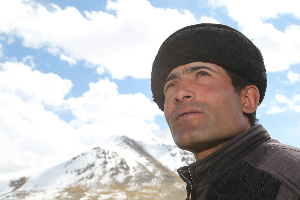 ↑塔吉克族全國人大代表拉齊尼·巴依卡是一名護邊員、更是一名共產黨員、一名退伍軍人。2021年1月4日,他為解救落入冰窟的兒童,獻出41歲的寶貴生命,被追授“時代楷模”稱號。這是2011年9月23日拉齊尼·巴依卡在新疆紅其拉甫邊境線的巡邏途中。 新華社發(李翔 攝)