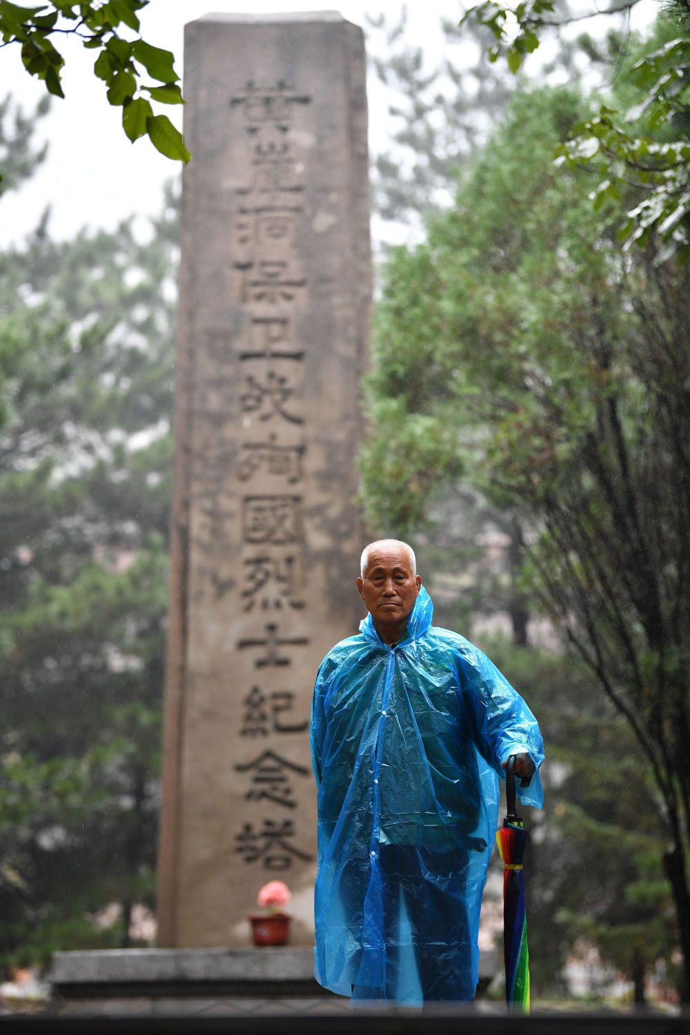↑76歲的趙乃堂是山西省黎城縣黃崖洞烈士陵園的守墓人,守護英烈30年。這是2018年9月18日,在黃崖洞烈士陵園,趙乃堂站在黃崖洞保衛戰殉國烈士紀念塔前。新華社記者 詹彥 攝