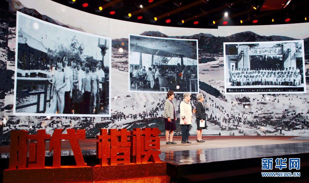 4月18日,三名東深供水工程建設者代表在“時代楷模”發布儀式上。新華社記者 潘旭 攝