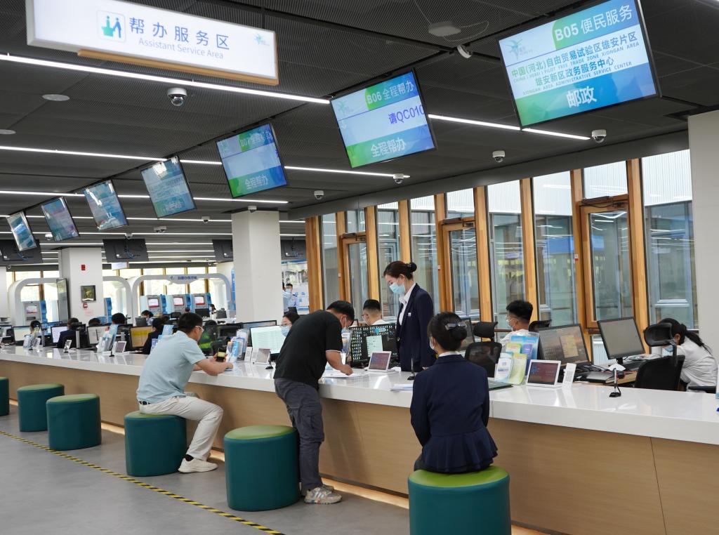 5月12日,在河北雄安新區政務服務中心幫辦服務區,工作人員為居民辦理業務。新華社記者 金皓原 攝