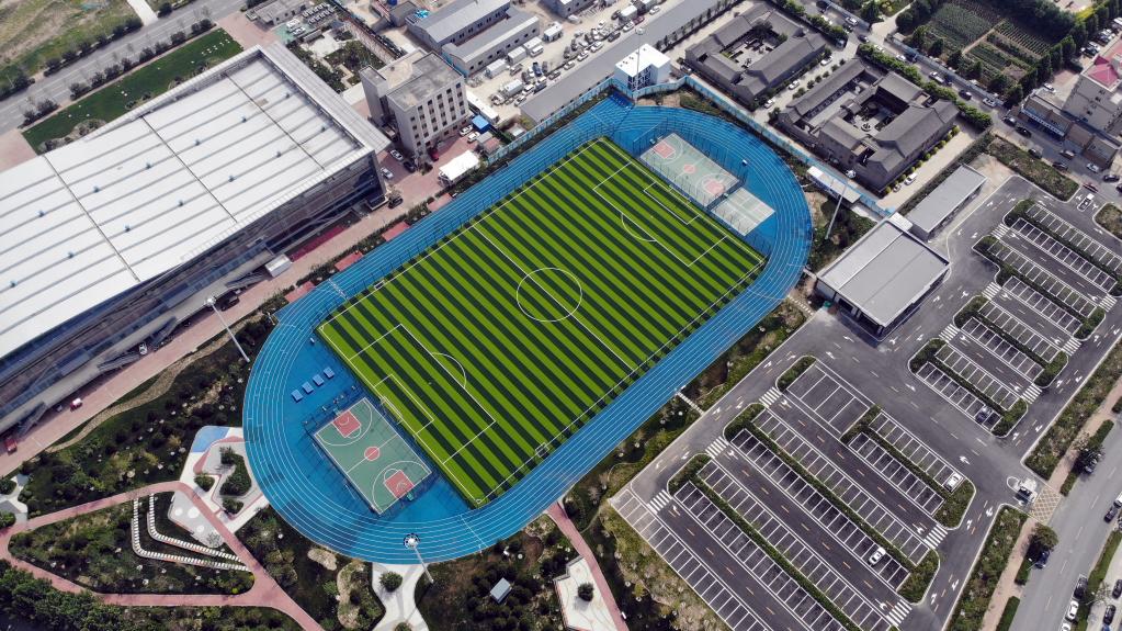 這是7月9日拍攝的容城縣體育公園(無人機照片)。新華社記者 駱學峰 攝