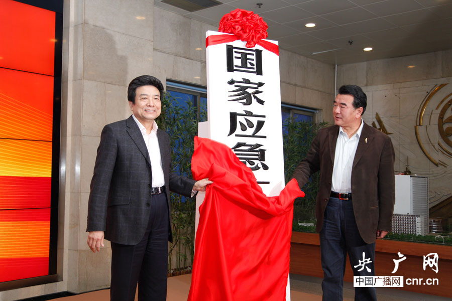 蔡赴朝與王求為國家應急廣播中心揭牌