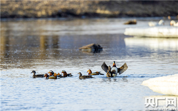 近日,在內蒙古興安盟索倫牧場轄區哈干河上,百余只鴛鴦在這里戲水覓食。據了解,因索倫牧場自然資源豐富,生態環境良好,每年四月初,成群結隊的鴛鴦都會陸續來到冰雪消融的哈干河繁殖。與此同時,近幾年在索倫牧場轄區內除了有鴛鴦種群,還發現有成雙成對的黑鸛、蓑羽鶴等國家重點保護鳥類在這里產卵、孵化、育雛。