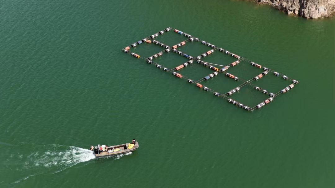 作業船只穿行于生態養殖網箱之間(和林格爾縣融媒體中心供圖)