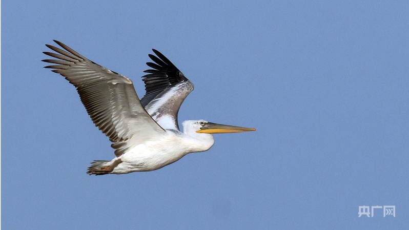 卷羽鵜鶘振翅高飛(央廣網發 興慶區委宣傳部供圖)