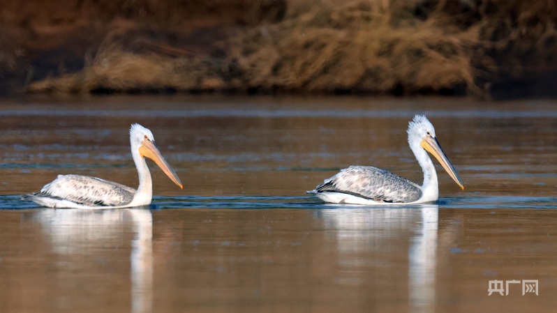 卷羽鵜鶘成群游弋(央廣網發 興慶區委宣傳部供圖)