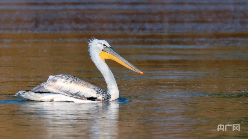 卷羽鵜鶘現身興慶區濕地(央廣網發 興慶區委宣傳部供圖)