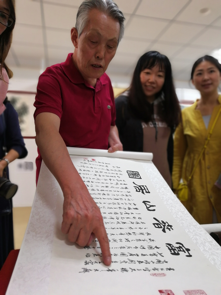 開幕式中,王春林向北京市石景山區(qū)圖書館贈送《王春林書畫作品集》。他表示,從藝60年也曾困頓,疑惑,動搖,但經(jīng)多位名師指點,最終堅持了下來,所以他深刻體會到熱愛書畫藝術(shù)卻無路可尋的苦悶。近10年來,他不斷堅持書畫創(chuàng)作,還創(chuàng)辦了無逸齋書畫工作室,幾乎以全年無休的狀態(tài),致力于推動國畫書法的民間教學,陸續(xù)培養(yǎng)了150名學生,讓他們在各自的學習、生活、工作領(lǐng)域擁有了令人羨慕的藝術(shù)特長。