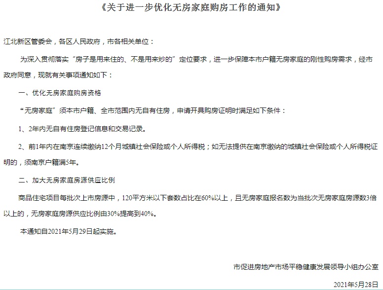 央廣網6月3日消息(記者 安垚)首批集中供地剛結束不久的南京,再出房地產調控新政。