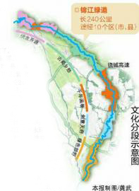 成都將構建展現天府文化的“錦江故事卷軸”。這幅卷軸由伏龍開源、古蜀鄉愁、千年畫卷、創意天府、綠色郊野五大文化主題段展示。伏龍開源段起于都江堰紫坪鋪水庫,止于彭青路,長25千米,突出“拜水都江堰”文化意境,依托青城山—都江堰景區、大熊貓國家公園等,強化旅游度假產業;古蜀鄉愁段起于彭青路,止于繞城高速路北段,長50千米,突出“生態田園,非遺民俗”文化景致,發展生態農業、休閑旅游;千年畫卷段起于繞城高速路北段,止于繞城高速路南段,長84千米,突出“水潤天府,花重錦官”文化景致,重點打造九里堤曉、江灣活水、城市陽臺、百花滄浪、望江雅竹、東湖放舟等“錦城十八景”;創意天府段起于繞城高速路南段,止于鐵路貨運外繞線,長53千米,突出“創新創造”的現代都市景觀;綠色郊野段起于鐵路貨運外繞線,止于黃龍溪古鎮南,長28千米,依托黃龍溪鎮、毛家灣等,強化郊野休閑、康養旅游和綠色農業。(記者蔣君芳羅向明)