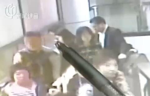 4月24日早高峰,曹女士在地鐵4號(hào)線浦東大道站出站,站在擁擠的自動(dòng)扶梯上,她感覺右腿膝蓋窩被人碰了一下,就回頭看了一眼。