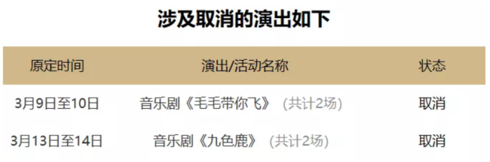 央廣網上海2月3日消息(記者林馥榆)新型冠狀病毒感染的肺炎疫情牽動著所有人的心。為避免疫情擴散,減少人員交叉感染,原定“2020原創華語音樂劇展演季”的演出將延期或取消,原定2-3月舉行的“2020音樂劇歌唱大賽”系列活動與“2020華語原創音樂劇孵化計劃”將延期,新的演出/活動時間將另行通知。