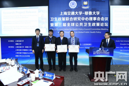 央廣網(wǎng)上海12月14日消息(記者吳善陽 通訊員皎軒)上海交通大學(xué)-耶魯大學(xué)衛(wèi)生政策聯(lián)合研究中心理事會會議暨第三屆全球公共衛(wèi)生政策論壇昨天舉行。國家衛(wèi)健委法規(guī)司副司長陳寧姍,上海市衛(wèi)健委副主任趙丹丹,上海交通大學(xué)副校長徐學(xué)敏,耶魯大學(xué)公共衛(wèi)生學(xué)院院長Sten Vermund,上海交大附屬第六人民醫(yī)院院長殷善開,耶魯大學(xué)公共衛(wèi)生學(xué)院前任院長Paul Cleary, 上海交大國際與公共事務(wù)學(xué)院代理院長胡近,耶魯大學(xué)生物統(tǒng)計(jì)系主任趙宏宇,上海交大附屬胸科醫(yī)院黨委書記鄭寧,上海交大國際與合作交流處處長羅鵬,上海市衛(wèi)生和健康發(fā)展研究中心主任金春林,西安楊森制藥有限公司副總裁陳建,上海交大國際合作與交流處副處長陳科、生物醫(yī)學(xué)工程學(xué)院副院長古宏晨、公共衛(wèi)生學(xué)院教授張智若、應(yīng)急管理學(xué)院執(zhí)行院長樊博、健康長三角研究院執(zhí)行院長張錄法,耶魯大學(xué)公共衛(wèi)生學(xué)院副教授陳希、研究員錢漢竹,上海交通大學(xué)-耶魯大學(xué)衛(wèi)生政策聯(lián)合研究中心執(zhí)行主任趙大海參加了論壇,來自國家衛(wèi)健委和耶魯大學(xué)的參會嘉賓通過網(wǎng)絡(luò)會議系統(tǒng)同步視頻參會。