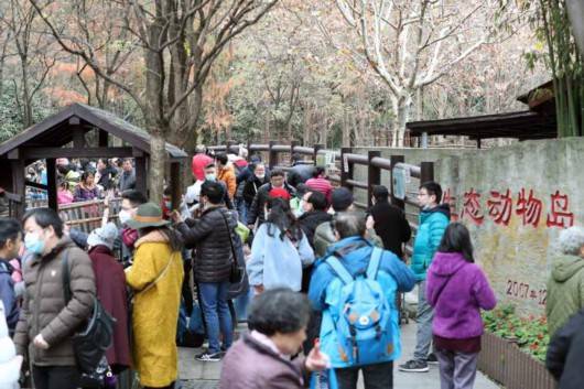 上午10點(diǎn)半左右,動(dòng)物島外排起了長(zhǎng)隊(duì),島內(nèi)瞬時(shí)客流也達(dá)到了500人的上限。
