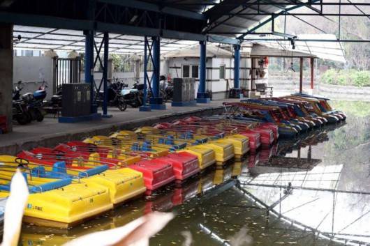 公園水位偏低,淤泥沉積,游船沒有開放。