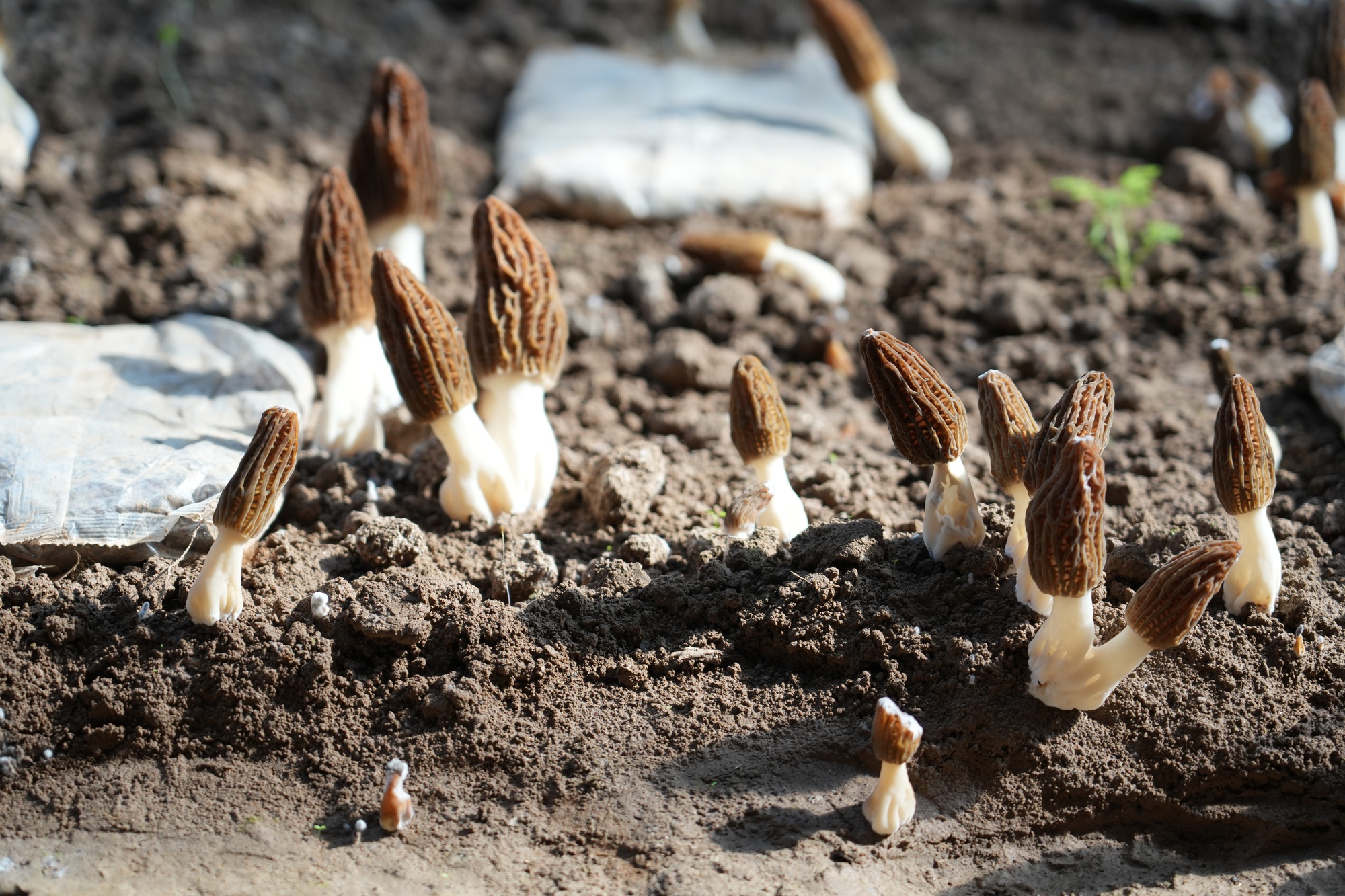 一朵朵外形別致、布滿蜂窩紋路的羊肚菌破土而出