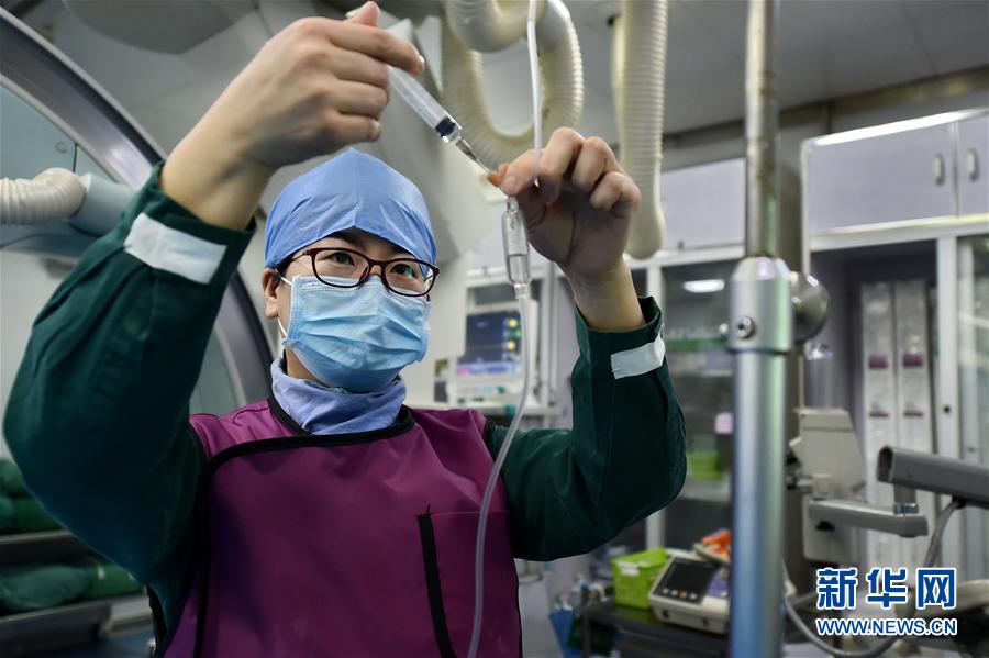 5月11日,山西省太原市中心醫院心內科導管室護士張娣在照顧病患。 -