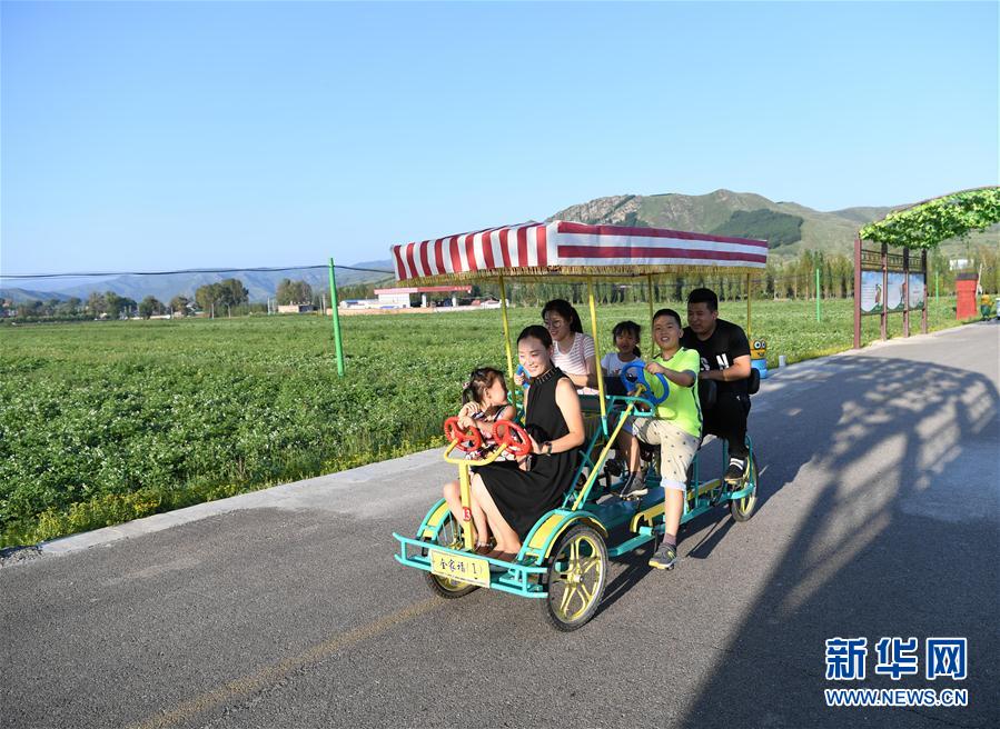 游客在位于嵐縣河口鄉王家村的土豆種植基地游覽(8月14日攝) 山西省呂梁市嵐縣地處呂梁山北麓,日照充足,晝夜溫差大,種植土豆的條件得天獨厚,全縣土豆種植面積達到30萬畝,年產超過40萬噸。 近年來,嵐縣將土豆產業與土豆文化高度融合,打造了嵐縣土豆花、土豆宴、土豆種等多個品牌,闖出了一條特色土豆產業發展之路。 新華社記者楊晨光 攝 -