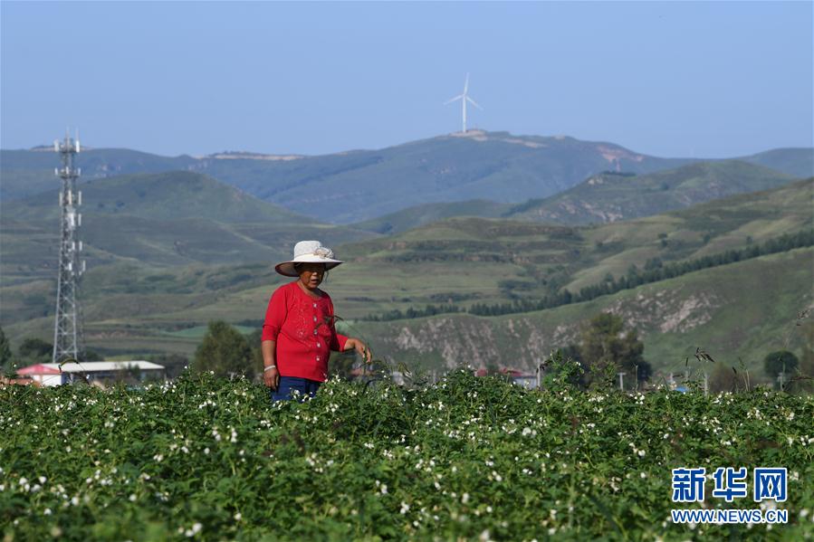 嵐縣河口鄉王家村村民史鳳英在土豆地里除草(8月14日攝) 山西省呂梁市嵐縣地處呂梁山北麓,日照充足,晝夜溫差大,種植土豆的條件得天獨厚,全縣土豆種植面積達到30萬畝,年產超過40萬噸。 近年來,嵐縣將土豆產業與土豆文化高度融合,打造了嵐縣土豆花、土豆宴、土豆種等多個品牌,闖出了一條特色土豆產業發展之路。 新華社記者楊晨光 攝 -
