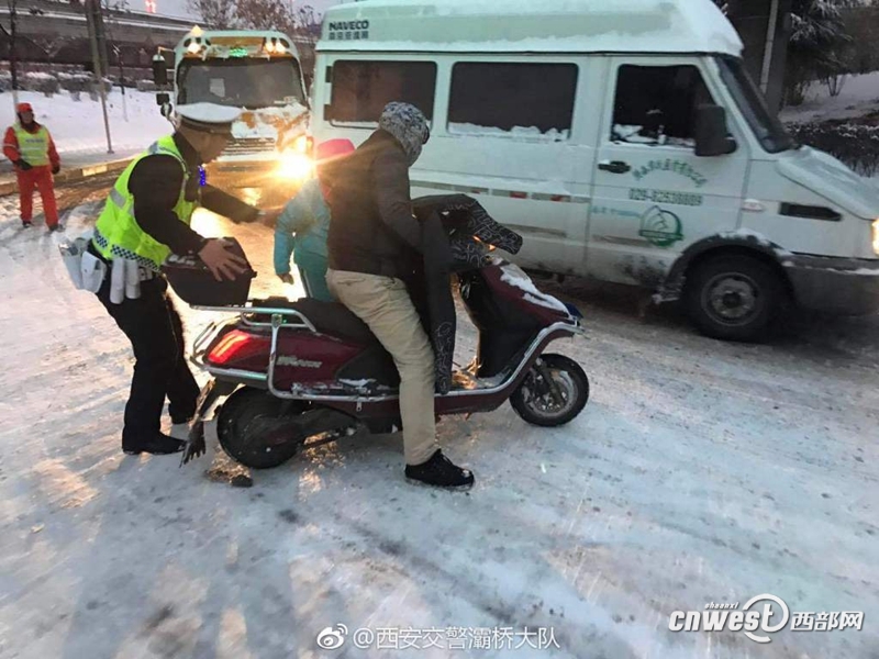 降雪致西安大部分城市道路結冰,多路段實施交通管制。