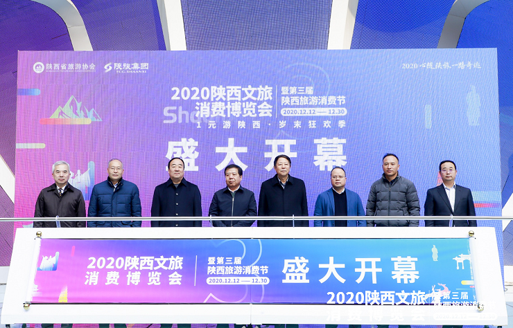 央廣網西安12月12日消息 由中共陜西省委宣傳部、陜西省文化和旅游廳指導,陜西省旅游協會、陜西旅游集團有限公司主辦,陜西駿途網文化旅游科技股份有限公司全案執行的“2020陜西文旅消費博覽會暨第三屆陜西旅游消費節”12月12日在西安四海唐人街開幕。中共陜西省委宣傳部副巡視員雎勵軍,陜西省旅游協會會長辛建偉,陜西旅游集團有限公司總經理任公正,陜西旅游集團有限公司董事、黨委副書記陳小軍、陜西省文化和旅游廳產業發展處處長尹為民等,同現場的上千名市民游客一起,共同見證了本次博覽會暨消費節的開幕。
