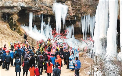 今年春節,在村子的冰掛美景前,“梿枷社火” 賺足了眼球。