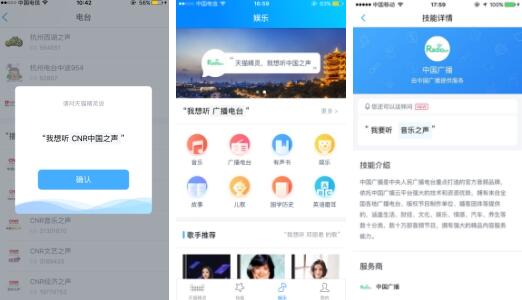 中國廣播在天貓精靈X1智能音箱首次推出了中央人民廣播電臺21檔直播節目。涵蓋中國之聲、經濟之聲、音樂之聲、經典音樂、中華之聲等24小時不間斷一流制作的海量廣播節目。中國廣播還將通過大數據分析,不斷更新及優化節目。在操作方面,用戶可通過天貓精靈X1智能音箱與手機客戶端天貓精靈互聯,用手機程序操作天貓精靈X1智能音箱。用戶可通過語音識別功對中國廣播直播節目進行點聽,例如可以向天貓精靈X1智能音箱發出:“天貓精靈,我想聽中國之聲”、”天貓精靈,播放中國之聲“等語音指示,為廣大阿里用戶提供更加智能、便捷的收聽體驗。