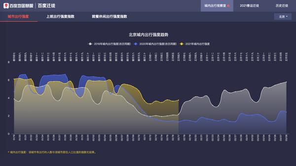 (2021春運以來北京市城內(nèi)出行強度趨勢)