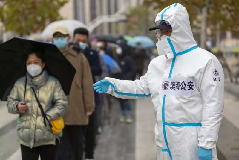 天津市濱海新區(qū)公安局公安干警引導(dǎo)居民有序排隊篩查(央廣網(wǎng)發(fā) 濱海新區(qū)公安局供圖)