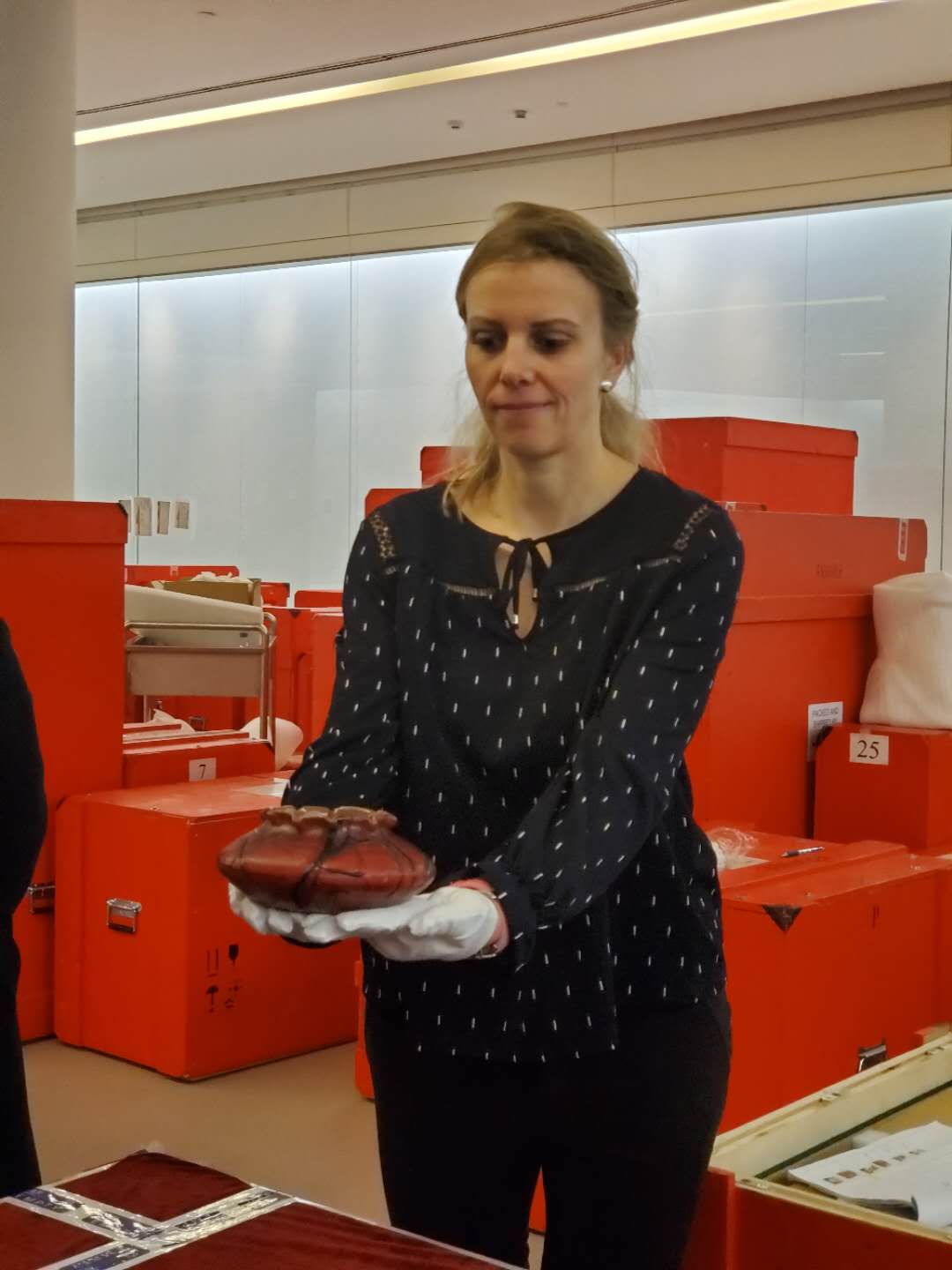12月12日,工作人員將藝術展品拆封(央廣網記者劉陽 攝)