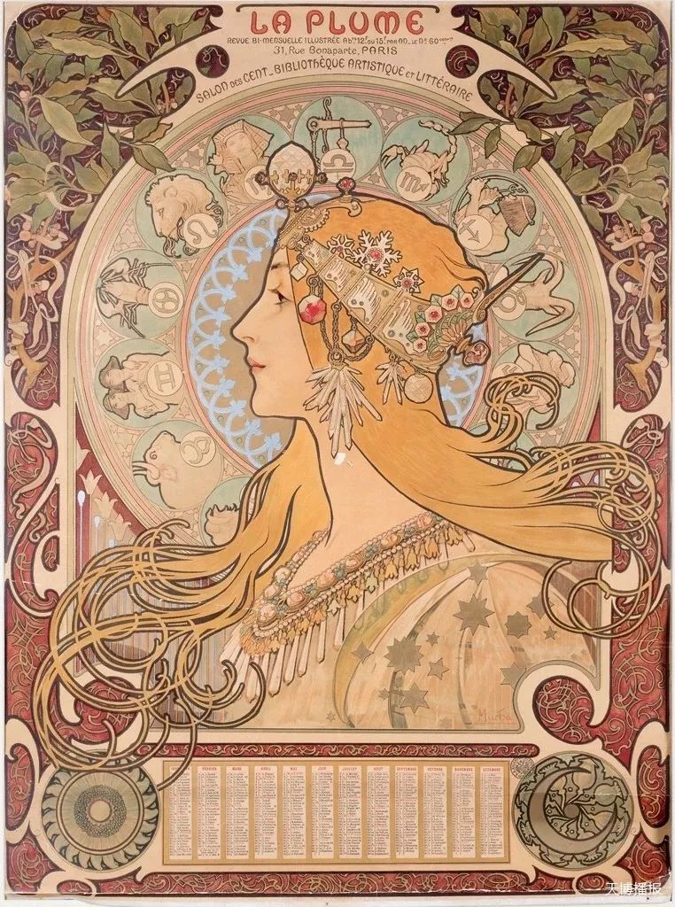 阿爾豐斯·穆夏(Alfons Mucha)是捷克的國寶級藝術家,也是歐洲新藝術運動的杰出代表,被《紐約每日新聞》譽為世界上“最偉大的裝飾藝術家”。他的創作涉獵廣泛,包括海報、插畫、裝飾板、工藝品設計以及油畫、雕塑等。他的作品既有鮮明的新藝術運動特征,又帶有強烈的個人色彩。早期海報、裝飾畫等作品以韻律化的裝飾線條、簡潔的輪廓線和柔和明快的水彩效果為特點,所描繪的女性形象甜美婀娜、柔媚動人,與人物周圍流暢的植物花紋曲線相輔相成、相得益彰,作品以素描、粉彩和蛋彩為主。晚期作品風格開始多樣化,更加自由奔放,晚年更是向巨幅油畫創作轉型,將自己和國家、時代的命運相融合,使作品富有永恒的生命力。