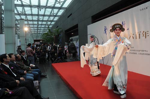 中廣網北京5月4日消息(記者 呂煒)5月4日,《蘭苑芳鰲—中國昆曲600年全景》特展在國家大劇院開幕。文化部藝術司司長董偉,北京市委宣傳部常務副部長陳啟剛,北京市文化局局長降鞏民,文化部非物質文化遺產司副司長屈盛瑞,故宮博物院副院長陳麗華,中國非物質文化遺產保護中心副主任、中國昆劇古琴研究會會長田青,北方昆曲劇院院長楊鳳一,國家大劇院副院長王爭鳴、楊玲和眾多昆劇院團代表、藝術界人士、昆曲愛好者參加了活動。