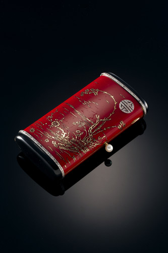 展品之一:琺瑯嵌石花草紋化妝盒