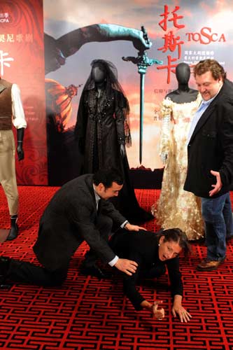 中廣網北京4月27日消息(記者 呂煒)“國家大劇院歌劇節·2011”的自制大戲《托斯卡》自4月中旬建組排練以來便受到關注。2011年4月26日,導演強卡洛·德·莫納科又攜該劇服裝設計海蘇斯·路易茲展示了“新鮮出爐”的部分服裝。劇中五位主演也首次亮相透露排練過程中的花絮。