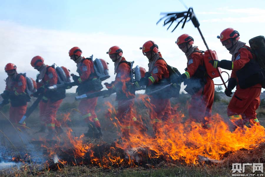 新疆伊犁森林消防支隊快反分隊利用班(組)戰術撲打明火場景 劉海攝