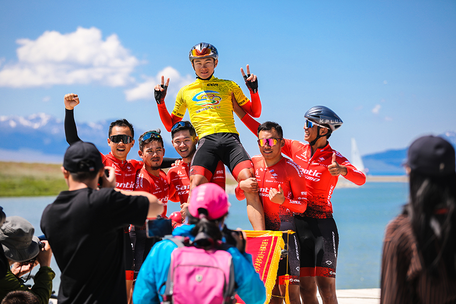 6月27日當天,中國新疆第十三屆環賽里木湖公路自行車賽第五賽段賽程圍繞“高山明珠”賽里木湖進行。起點位于賽里木湖南門,終點在月亮灣,全程65公里,整個賽段平均海拔超過2100米。雖然高海拔環境給騎行增加了難度,但沿途的風景卻讓選手意猶未盡。在冠軍爭奪戰中,邁金朝盟體育車隊選手夏威以1小時18分35秒的成績沖線,奪得第五賽段冠軍。