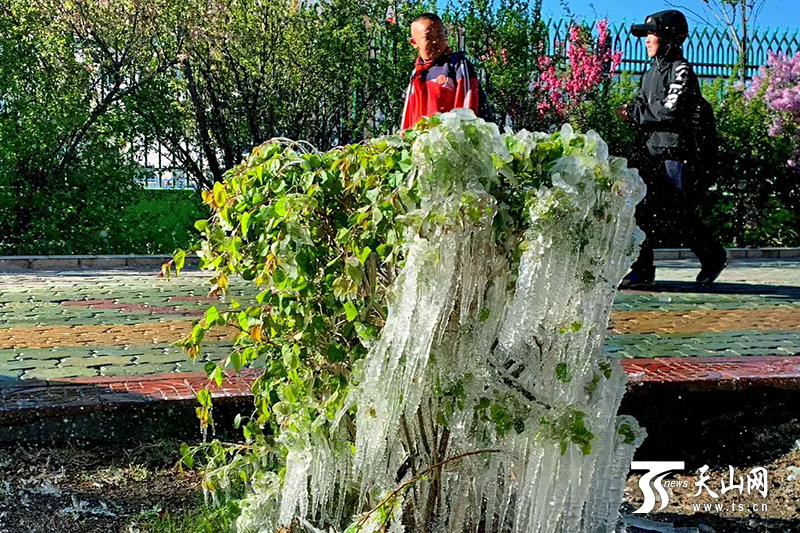 天山網訊(記者喻義昌 通訊員加克 · 杜格爾加甫 何承強 巴圖攝影報道)近日受冷空氣影響,和布克賽爾蒙古自治縣氣溫驟降。5月14日早晨,庭內、院外、路邊突現“冰雕”,展示了初夏的另一番俏皮景象。