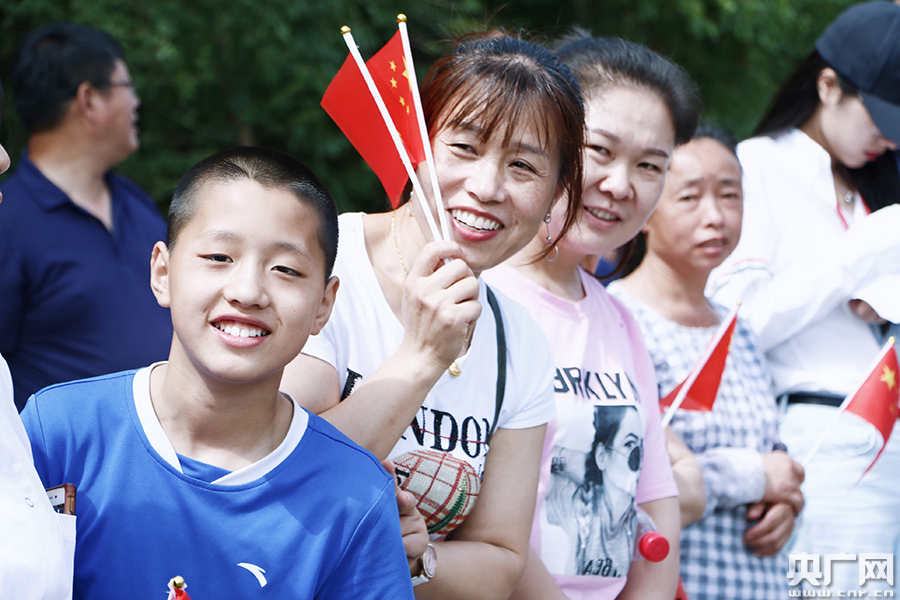 比賽沿線群眾為參加比賽的車手加油鼓勁(央廣網(wǎng)見習記者 王天浩 攝)