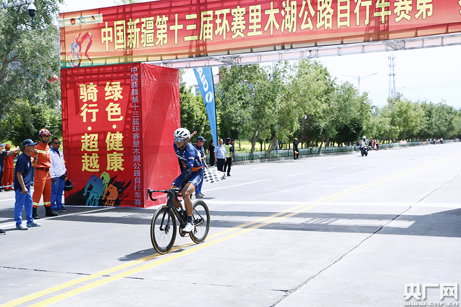 來自上海的邁金朝盟體育車隊選手劉祝慶奪得第一賽段冠軍(央廣網(wǎng)見習記者 王天浩 攝)
