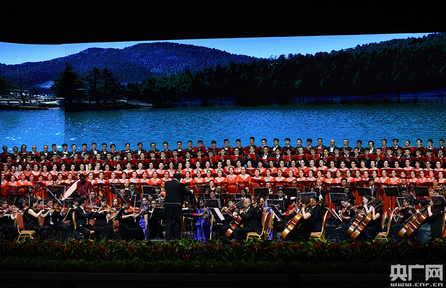 “七·一”交響音樂會在新疆人民會堂奏響(央廣網見習記者 王天浩 攝)