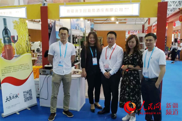 楊建東(右一)參加展會推動新疆當地產品外銷。福建援疆前方指揮部供圖