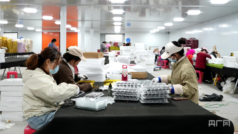 工作人員按照櫻桃品種、克重、色澤度等不同指標(biāo)分類分揀打包 (央廣網(wǎng)發(fā) 趙新昌 攝)