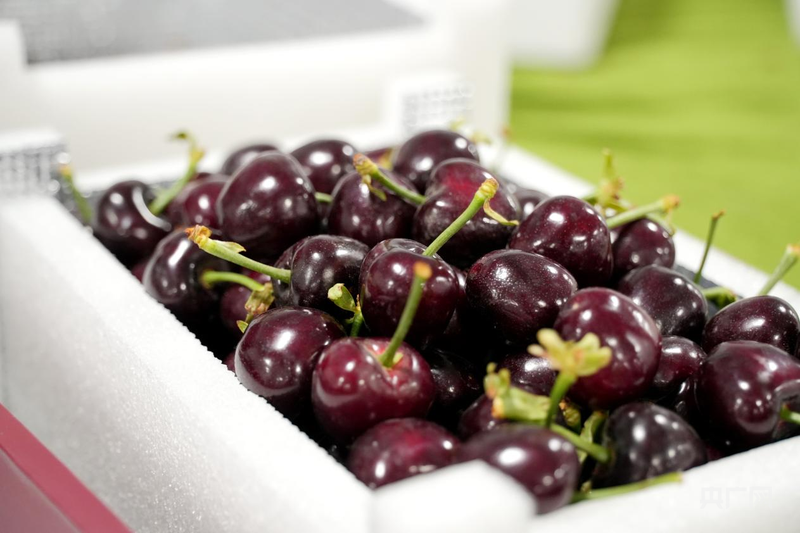 阿克蘇冰雪蜜脆園果業(yè)有限公司設(shè)施農(nóng)業(yè)基地產(chǎn)出的櫻桃 (央廣網(wǎng)記者 丁安 攝)
