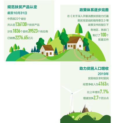 截至10月31日,中西部22個省份共認定136130個扶貧產品,已銷售2276.65億元。消費扶貧已成為鞏固脫貧成果、防止返貧的有力舉措,創造出消費者買到好東西、扶貧產品賣出好價錢、貧困群眾增收闖出好路子的多贏局面。