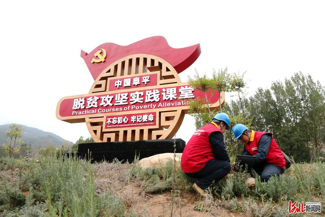 攻堅!2019年10月,國網(wǎng)阜平縣供電公司共產(chǎn)黨員服務(wù)隊對龍泉關(guān)鎮(zhèn)顧家臺村脫貧攻堅實踐課堂景觀照明裝置進行檢查(劉鐘毓攝影)