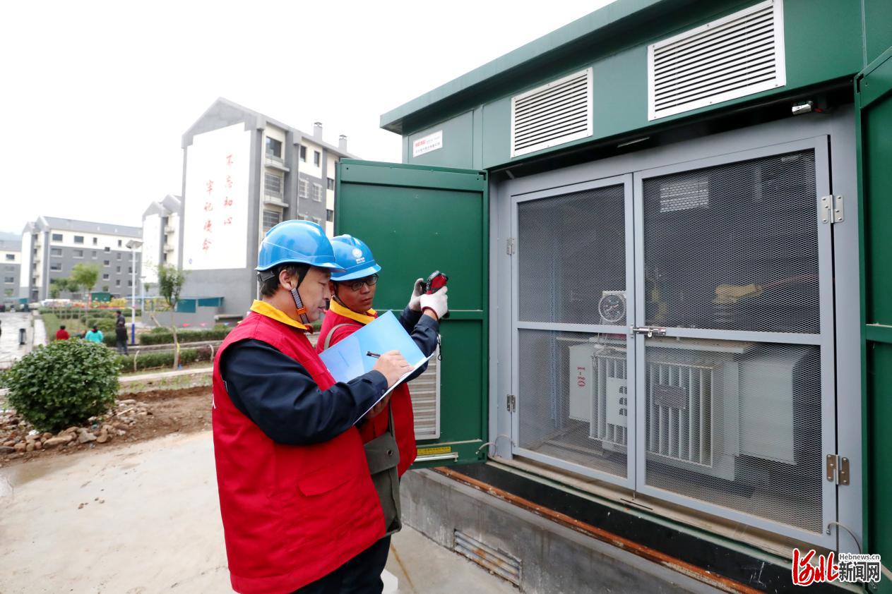 新家!2019年10月,國網(wǎng)阜平縣供電公司共產(chǎn)黨員服務(wù)隊檢查天生橋鎮(zhèn)易地扶貧搬遷小區(qū)電力設(shè)備,保障居民溫暖過冬(劉鐘毓攝影)