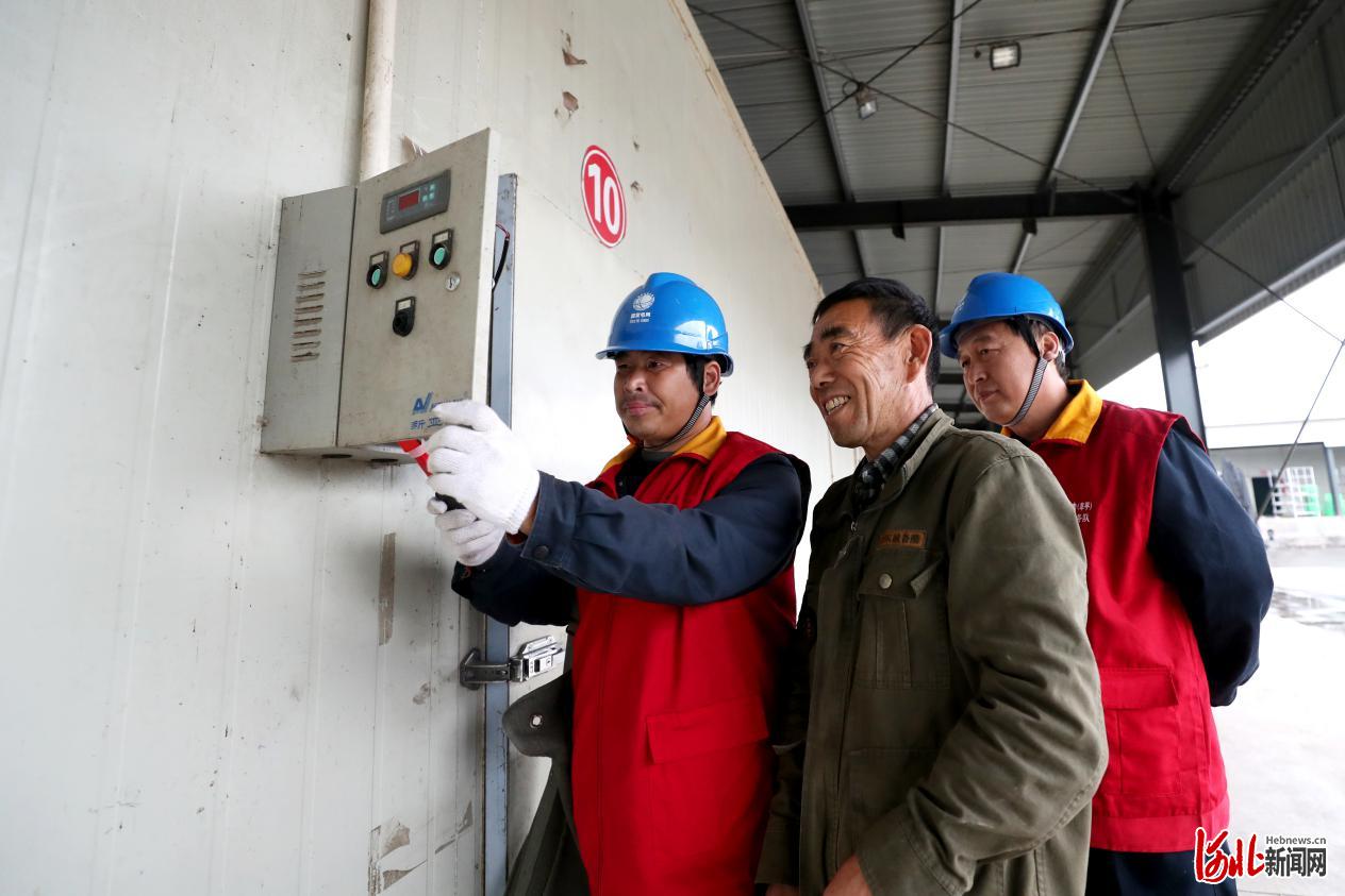 幸福!2019年10月,國網(wǎng)阜平縣供電公司共產(chǎn)黨員服務(wù)隊對“老鄉(xiāng)菇”食用菌產(chǎn)業(yè)園的冷庫設(shè)備開關(guān)進行檢查(劉鐘毓攝影)