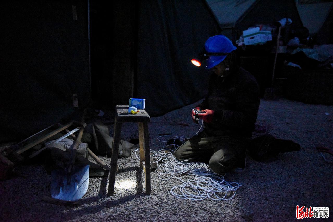夜戰(zhàn)!2017年5月5日,國網(wǎng)淶源縣供電公司員工連夜為北牛欄村易地搬遷臨時安置帳篷接電(翟文濤攝影)